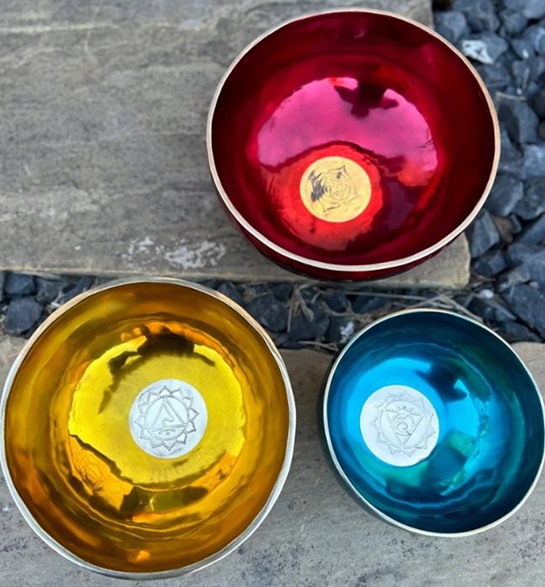 - Use of crystal singing bowls, Tibetan bowls, gongs, chimes, and tuning forks